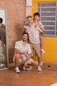 Para as camisas, apostamos em uma composição de 50% algodão, 30% viscose e 15% linho. O algodão traz a maciez e o conforto característicos, enquanto a viscose contribui com leveza e suavidade. O toque final de linho proporciona um aspecto natural e sofisticado, além de colaborar para a respirabilidade da peça.